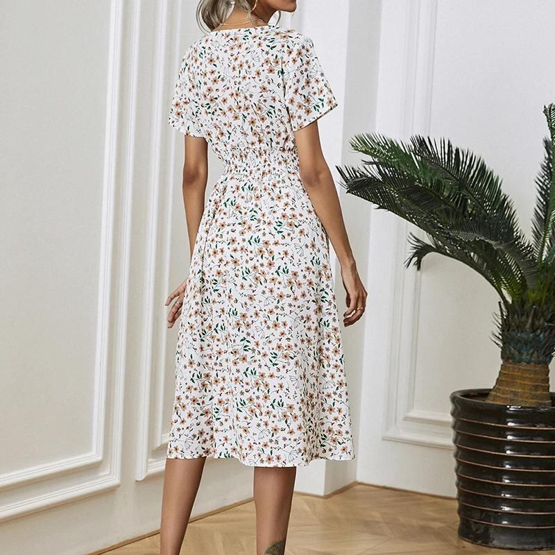 Gidyq-女性の花柄半袖ドレス、アメリカンレトロカジュアルプリント、Vネック、サマーファッション、エレガントなレディースドレス、新しい_148