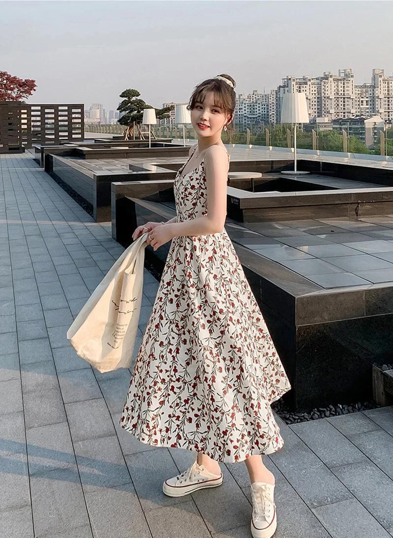 Gidyq-女性の花柄スパゲッティストラップドレス、夏の愛らしいシックなノースリーブドレス、女性の韓国のカジュアルファッション、ラインドレス、新しい_149
