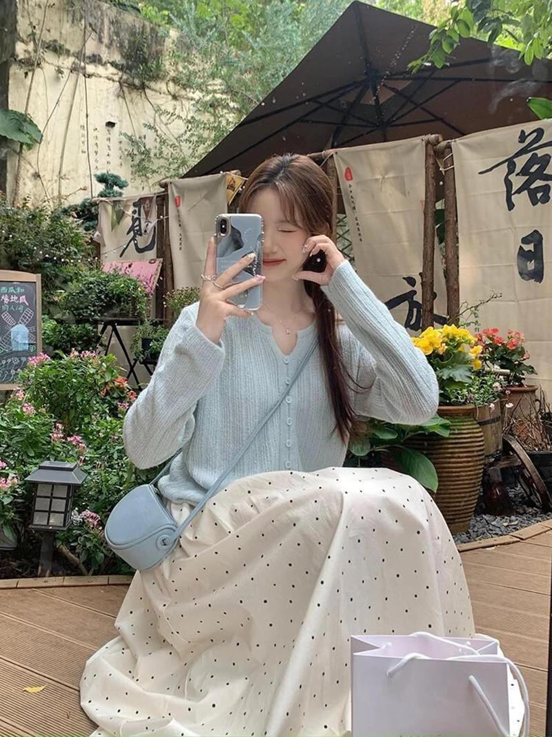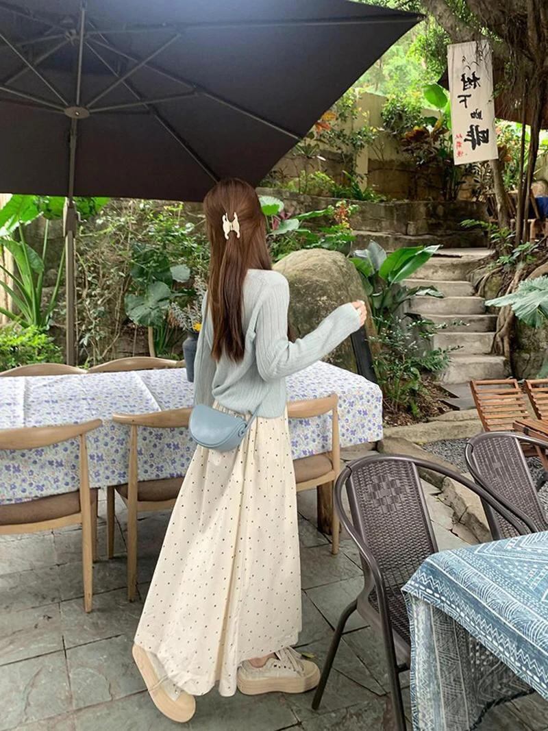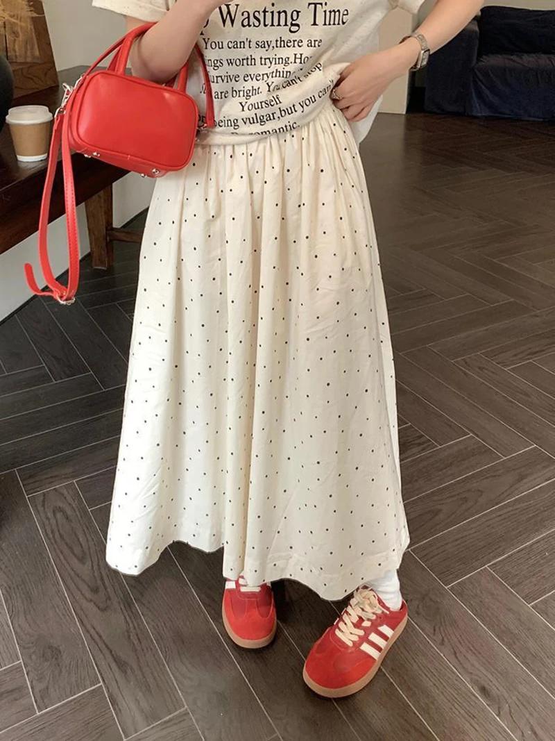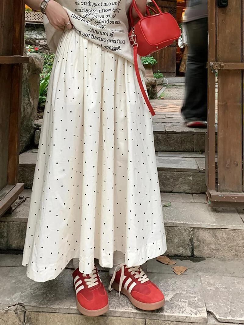 Kawaii-女性用水玉ミドル丈スカート,韓国ファッション,オフィスウェア,ラインスカート,ハイウエスト,すべてにマッチ,エレガント,ルーズ,夏,新品_160