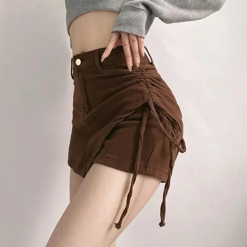 Gidyq-女性のためのレトロなショーツスカート、アメリカのセクシーなサイドドローストリング、ハイウエスト、ヒップラップスカート、カジュアルストリートウェア、不規則な女性のショーツ_161