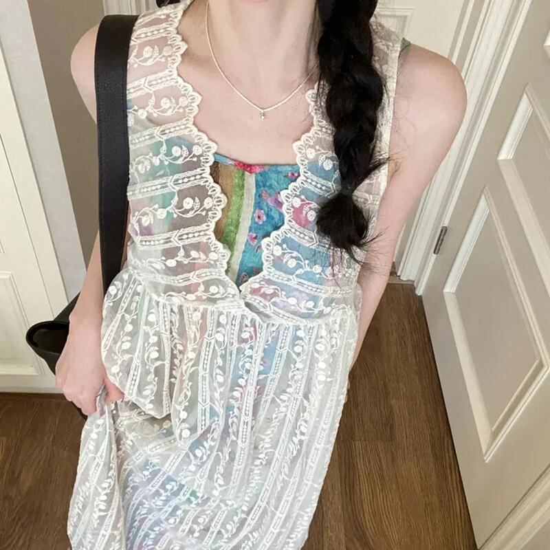 Gidyq-女性、韓国、y2k、甘い、エレガント、ビーチタンクレトロ、花、自由奔放に生きる、迷彩、女性、夏、新しい用の白いレースドレス_163