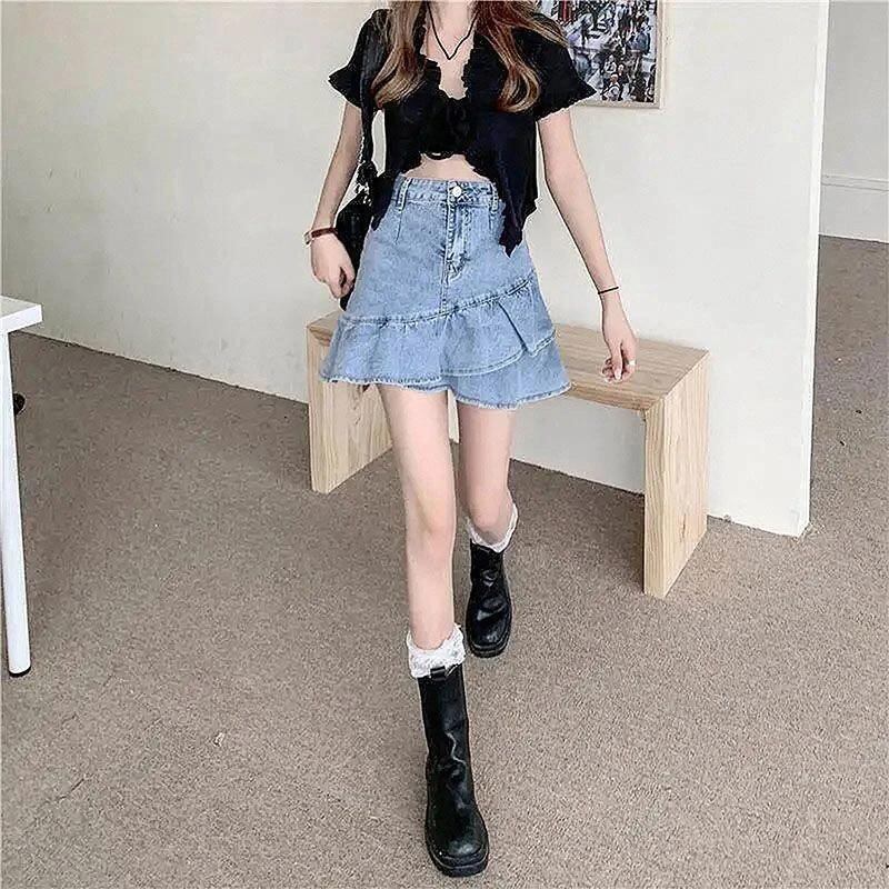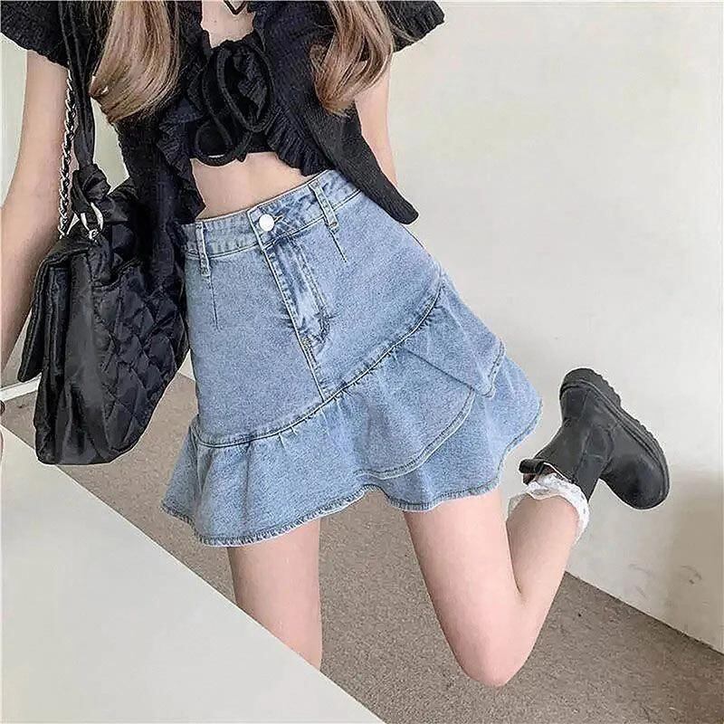 Gidyq-女性のためのフリルデニムスカート、スリム、ハイウエスト、不規則、ミニスカート、韓国のファッション、エレガント、原宿、スプリット、レディース、夏_167