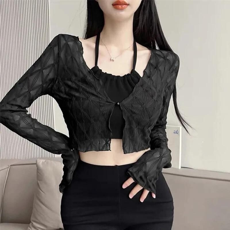 Gidyq-女性のための透明なシャツ、スリムフィット、甘いレース、薄いブラウス、無地のシック、すべてのマッチ、女性のための長袖トップス、韓国のファッション、新しい夏_172