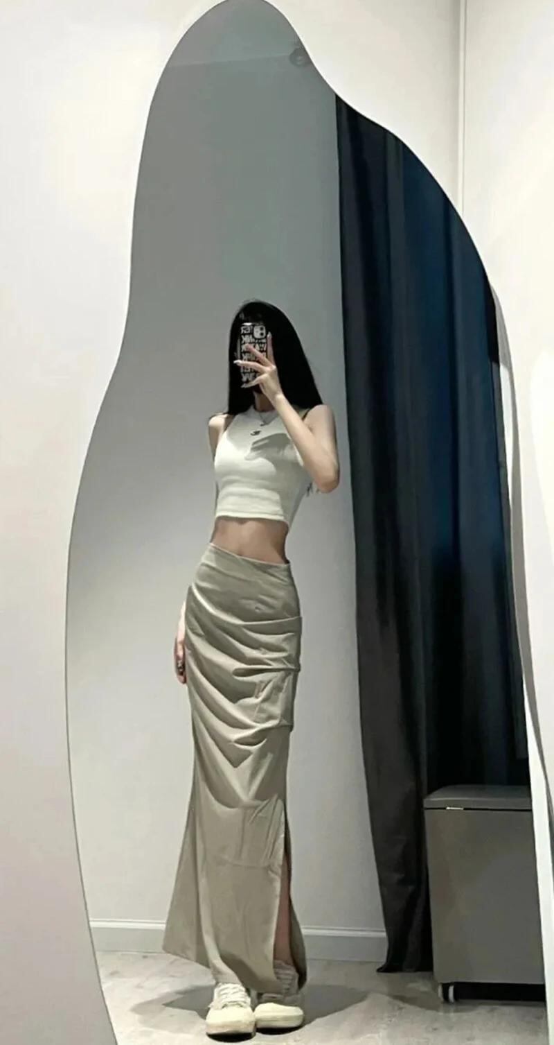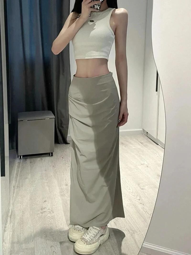 Gidyq-女性用ハイキカーゴスカート、カジュアルストリートウェア、女性用スリムプリーツスカート、アメリカのファッション、ソリッドハラジュクロングスカート_173
