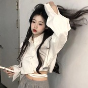 女性の背中のレースアップシャツ、韓国のファッション、プレッピースタイル、白い長袖トップ、カジュアル、オールマッチ、甘い女性のブラウス、夏、y2k_175