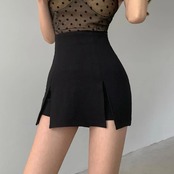 女性のための不規則なショートスカート,セクシーな韓国のスカート,ハイウエスト,黒,分割,オフィス,女性のためのヒップラップ,単色,ミニ,ファッション,新しい_176