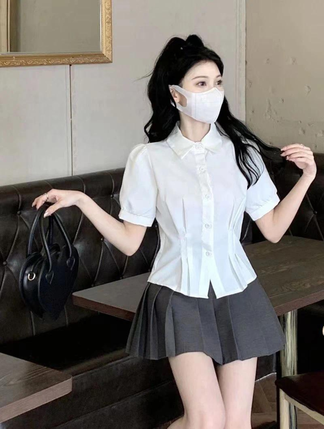 Gidyq-女性のための甘い半袖シャツ、青いjkプレッピースタイル、薄いフィットトップス、韓国のファッション、シック、エレガント、無地のブラウス、女性、夏_182