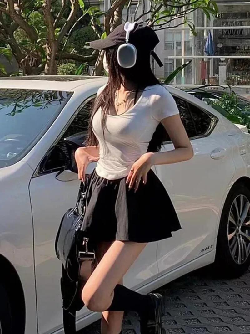 Gidyq-女性のセクシーなハイウエストボールガウン、y2k、シック、ミニ、韓国、エレガント、パーティー、ソリッド、オールマッチ、ファッション、ブラック_187