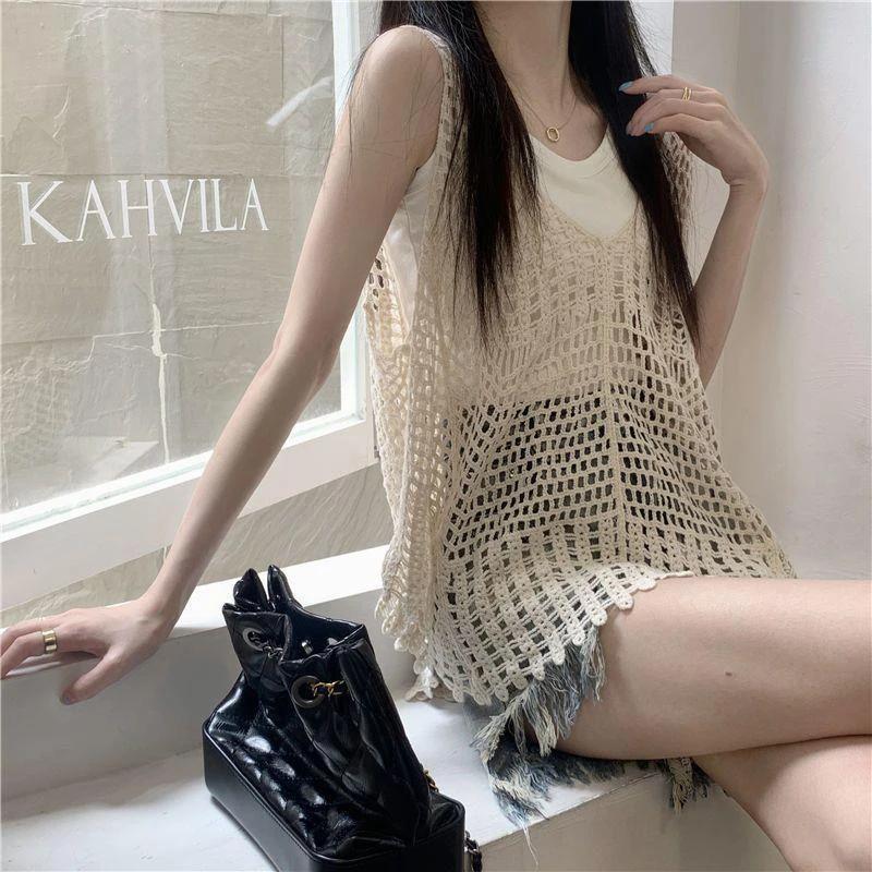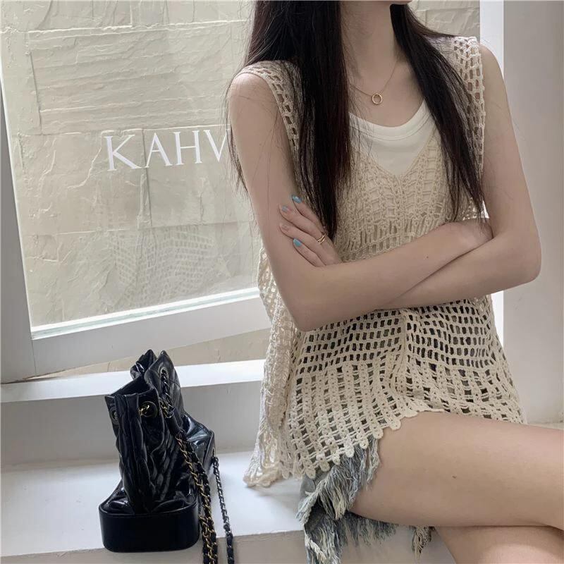 Gidyq-女性のための中空のノースリーブのタンクタンクトップ、韓国のファッション、シックなキャミソール、原宿カジュアルなルーズニットベスト、新しいトップス、夏_199