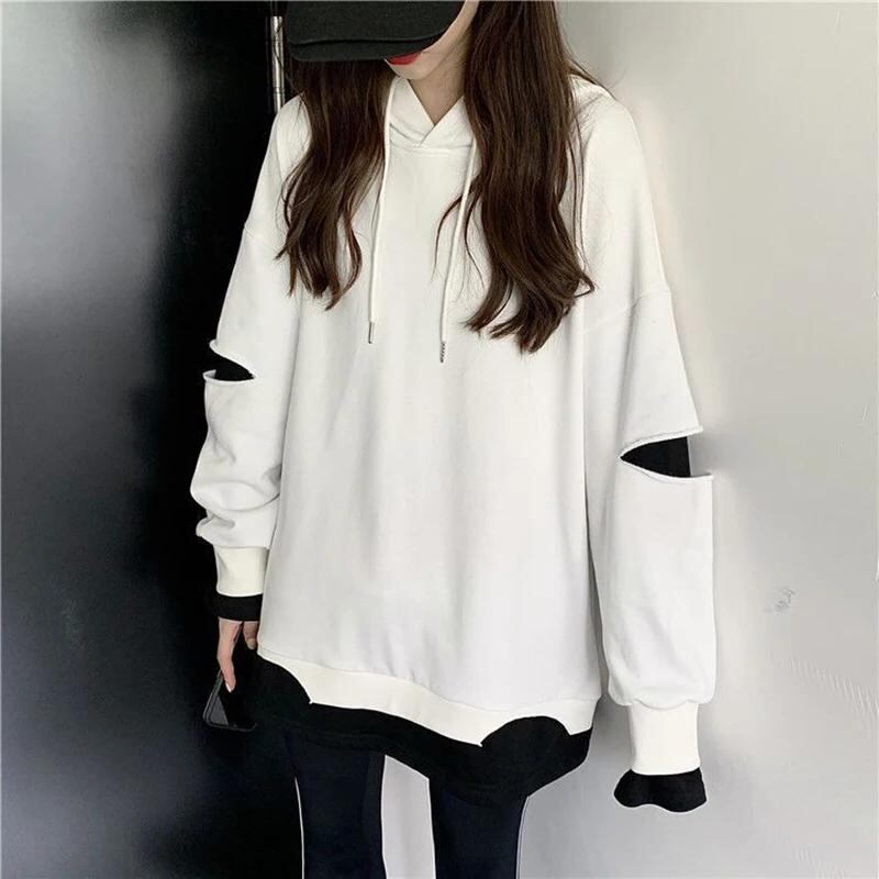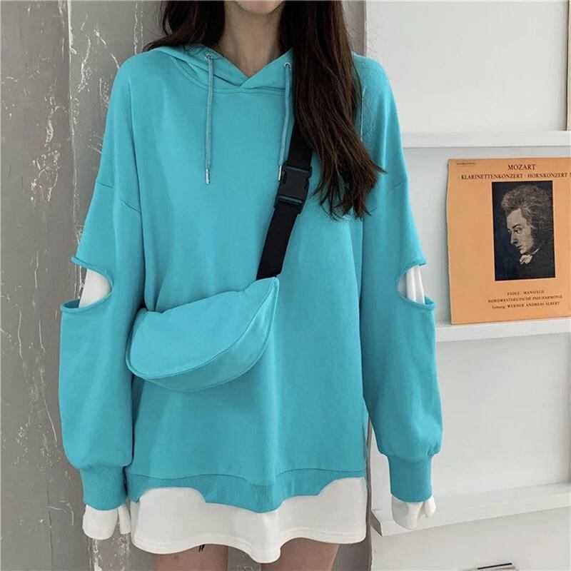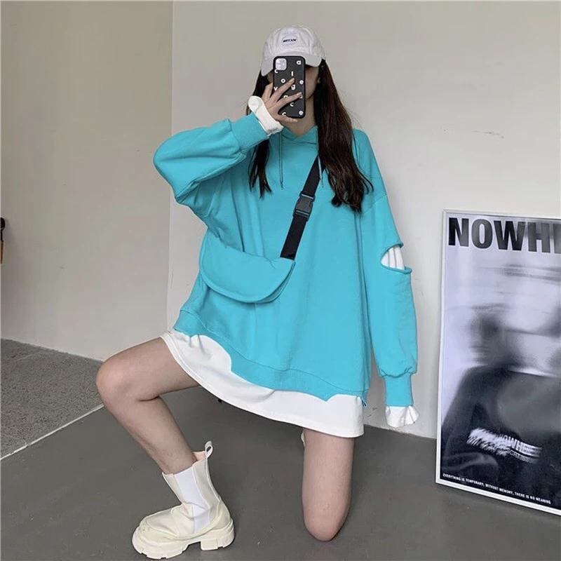Gidyq-女性用長袖スウェットシャツ,韓国のファッション,パッチワーク,ストリートウェア,ルーズパーカー,カジュアルコート,秋_204