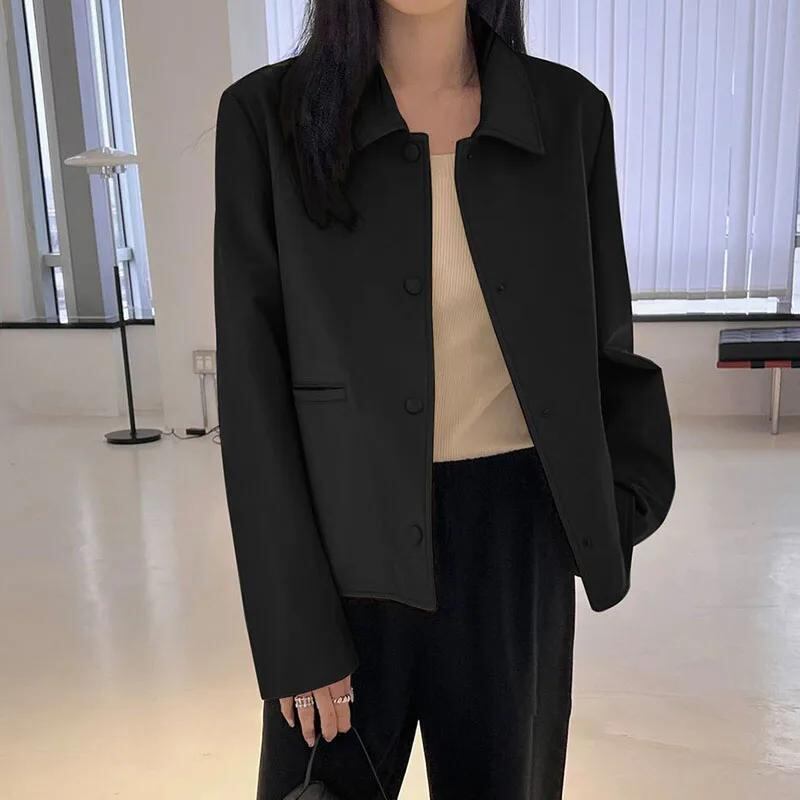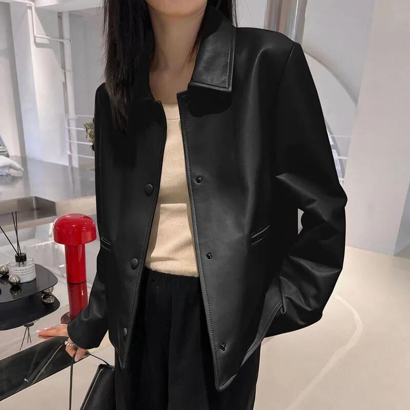 Gidyq-レディースレザージャケット,韓国のカジュアルなストリートウェア,ゆったりとしたコート,ボタン付きのすべて,単色,黒のアウターウェア,秋のファッション,新品_209
