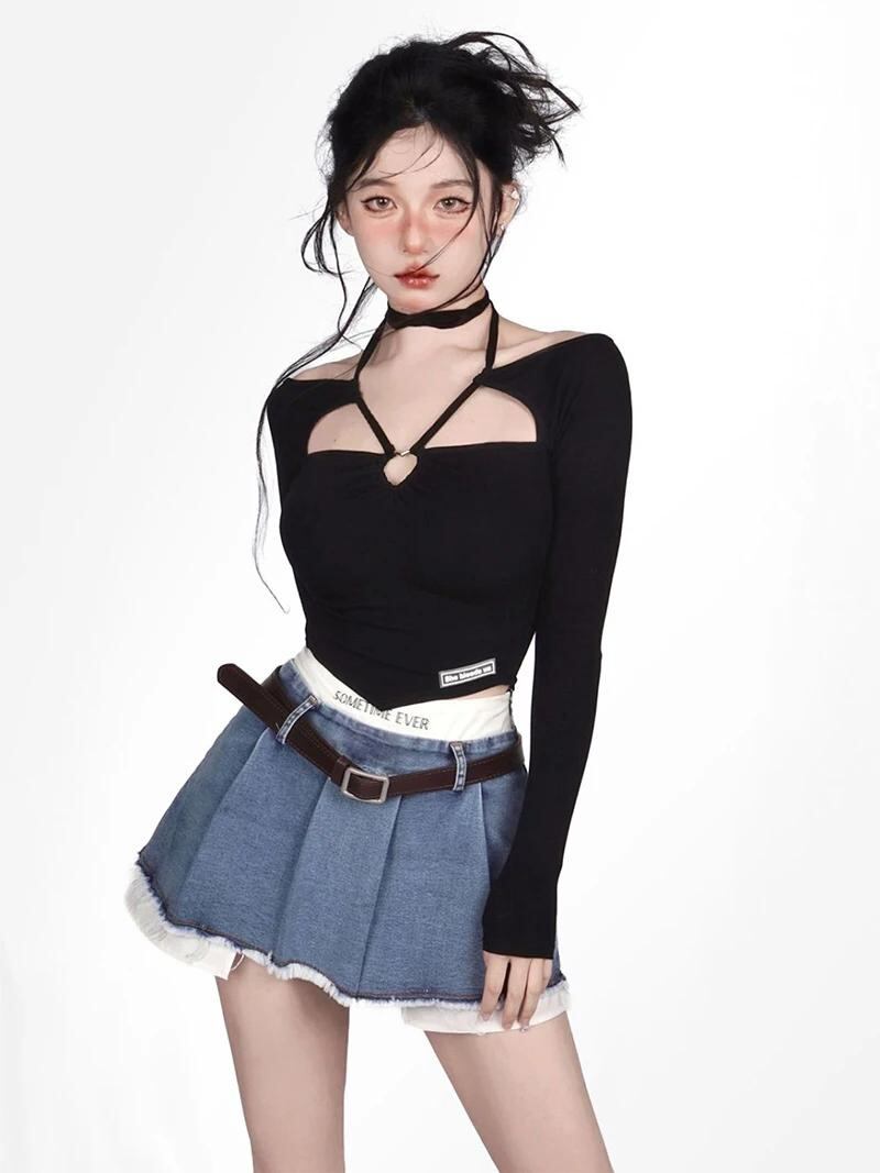 Gidyq-女性のためのパッチワークデニムスカート、韓国のファッション、ストリートウェア、ハイウエスト、ミニスカート、カジュアル、タッセル、ジーンズ、夏_214
