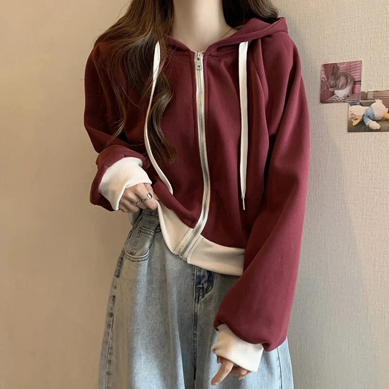 Gidyq-女性のカジュアルなオールマッチジッパーコート、韓国のファッション、パッチワークルーズパーカー、女性のストリートウェア、秋、新しい_215