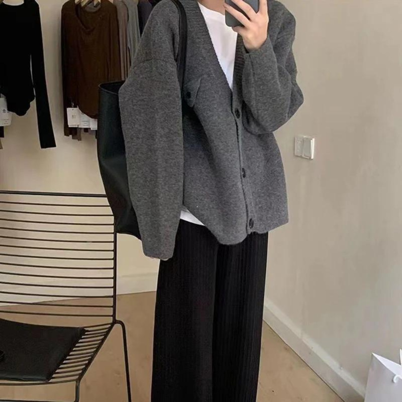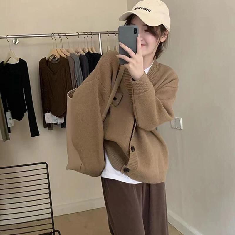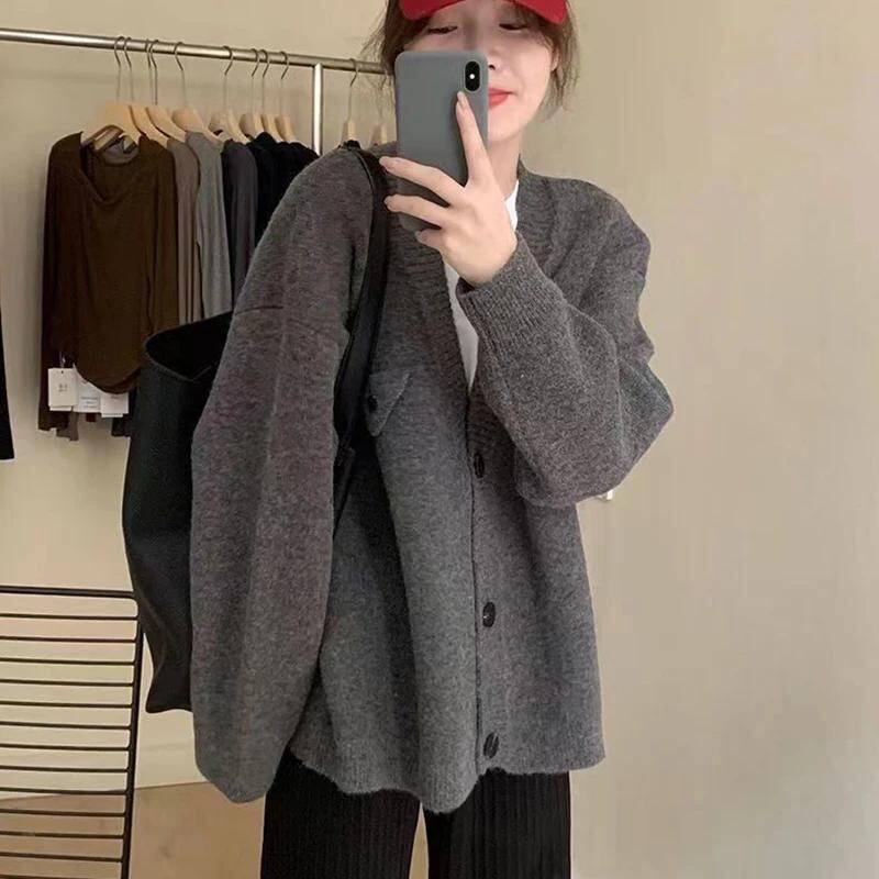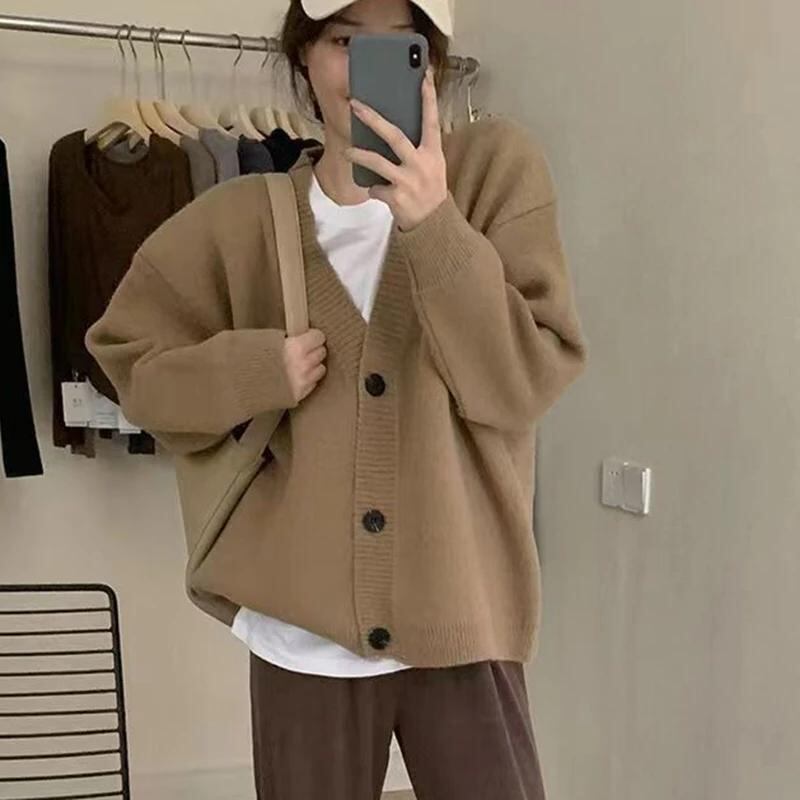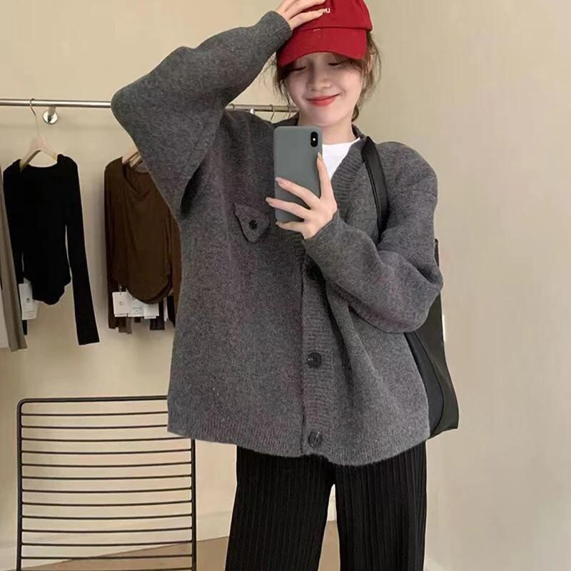 Gidyq-女性用ニットカーディガンセーター,長袖ジャケット,すべてのコート,大きなボタン,韓国のファッション,カジュアル,秋_217