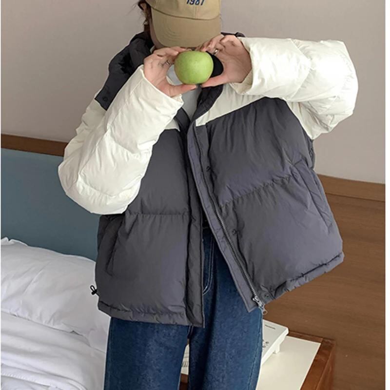 Gidyq-女性の厚手の暖かいルーズダウンコート、パッチワークパーカー、韓国のすべてがパフテジャケット、カジュアルストリートウェア、女性のファッション、冬_221