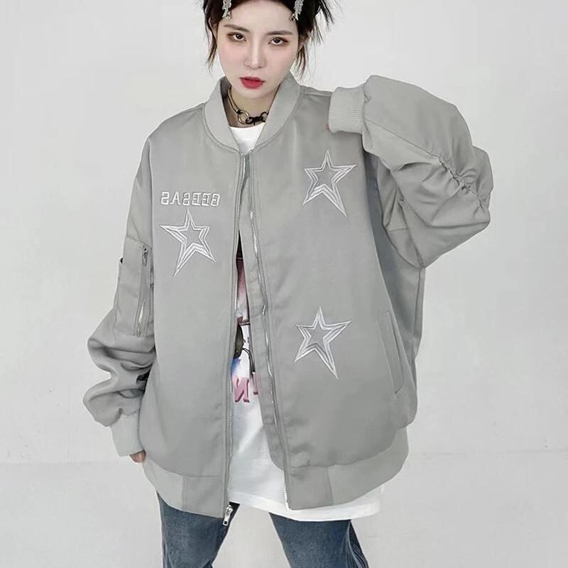 Gidyq-女性用の星が刺繍された野球ジャケット,ルーズな婦人服,原宿のコート,カジュアルなストリートウェア,韓国のファッション,秋_223