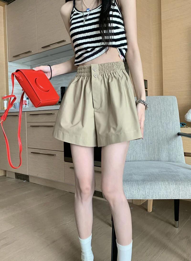 女性用ハイウエストワイドレッグショーツ,カジュアルストリートウェア,オフィスウェア,韓国のファッション,プリーツ,夏_225