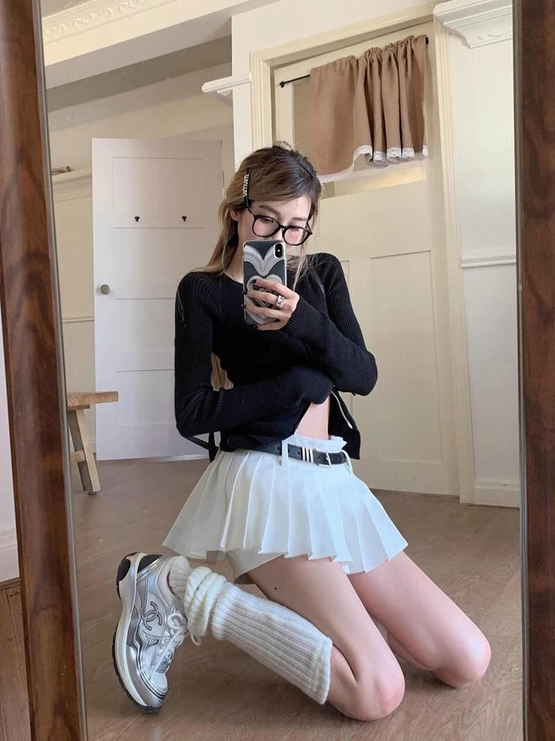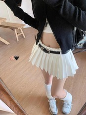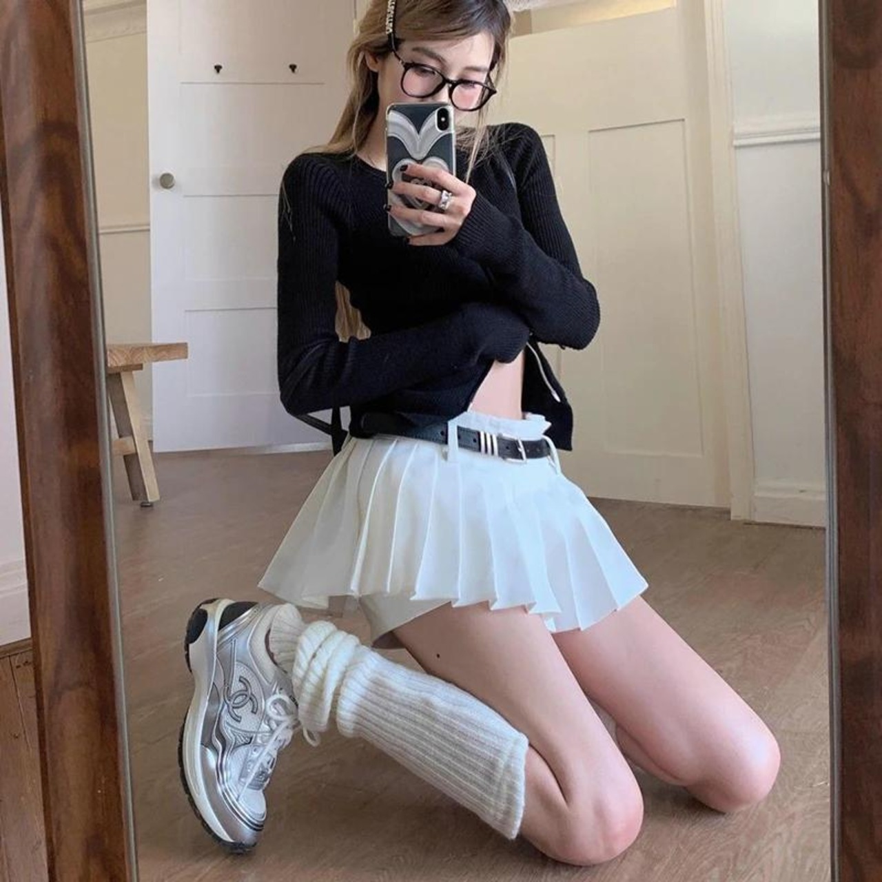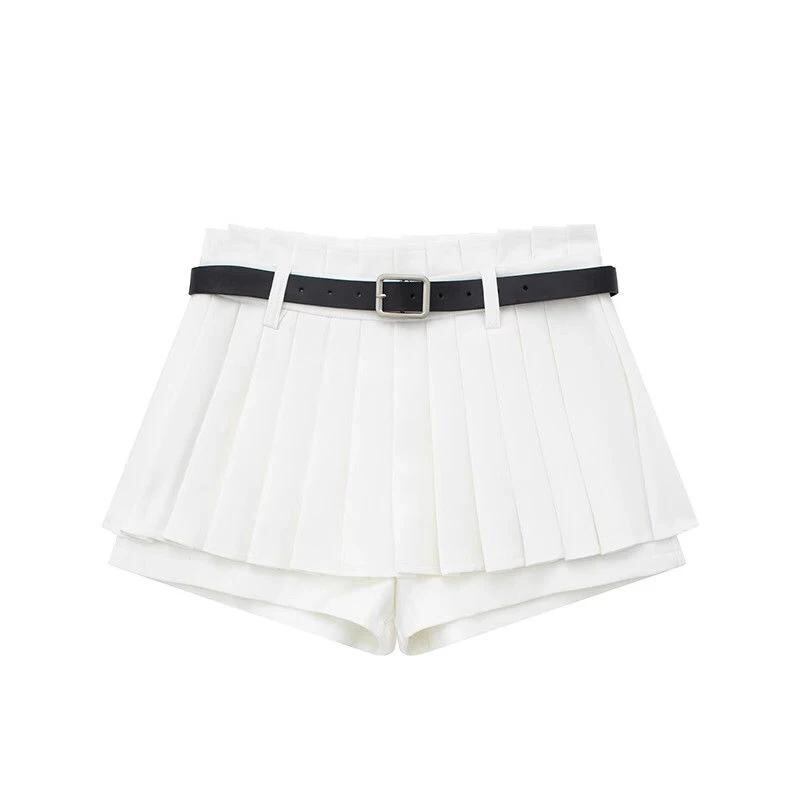 女性のための白いプリーツスカート,安全パンツ付きスカート,韓国のファッション,Aライン,ハイウエスト,ベルト,すべてのマッチ,セクシー,夏,新しい,y2k_227