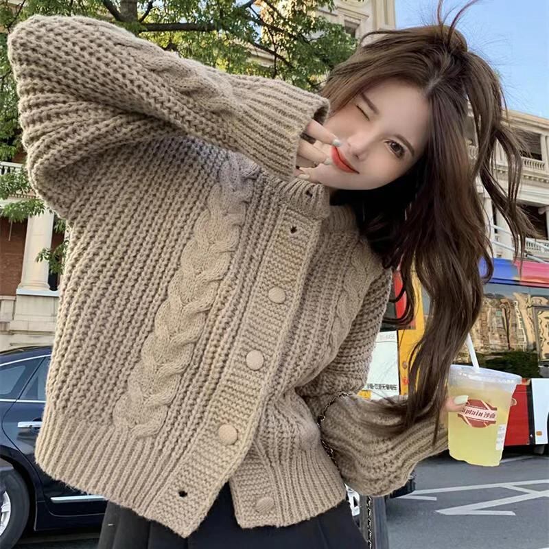Gidyq-女性用長袖ニットカーディガンセーター、ルーズコート、オールマッチ、ボタンジャケット、韓国のファッション、カジュアル、女性、秋、新しい_230