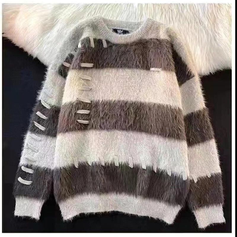 Gidyq-韓国のストライプセーター女性用、長袖、ニットジャンパー、カジュアルな女性のストリートウェア、ルーズストラップ、秋のファッション、新しい_235