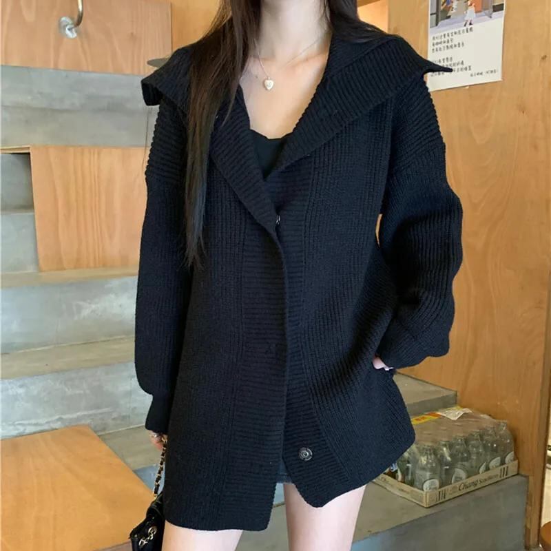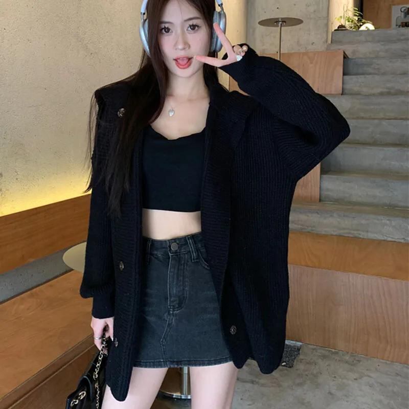 Gidyq-女性用ブラックルーズニットカーディガンセーター、オールマッチジャケット、カジュアルコート、女性用ストリートウェア、韓国ファッション、秋、新品_239