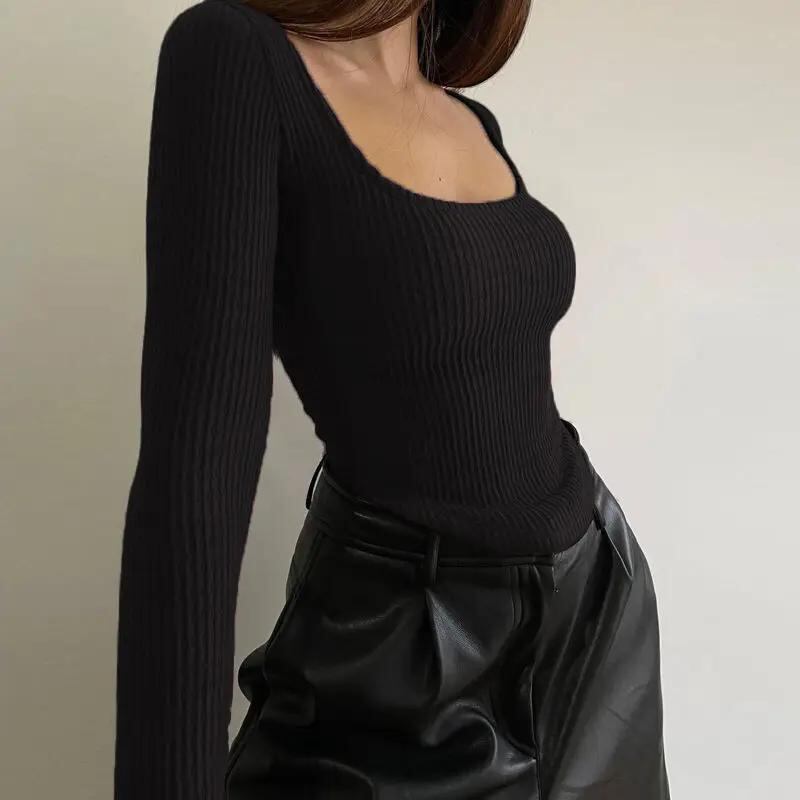 Gidyq-女性のためのセクシーなローカットTシャツ,長袖のストリートウェア,女性のためのモダンなフィット感のある2019年秋コレクション_244