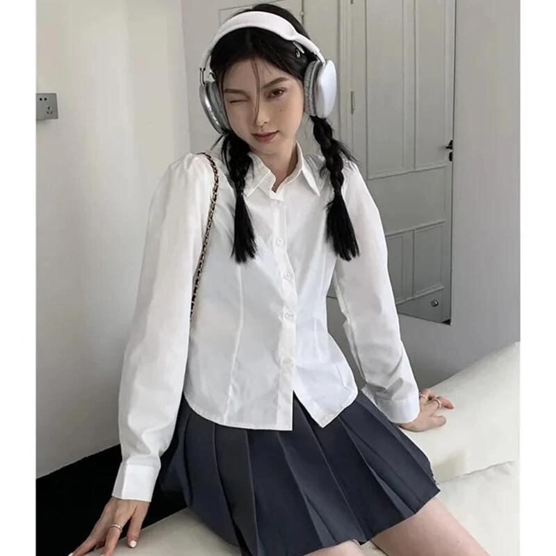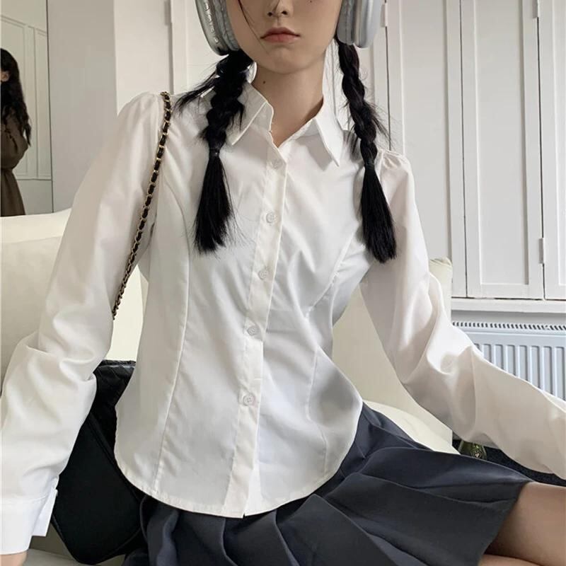 Gidyq-韓国の女性用レースアップシャツ、春のファッション、ストリートウェア、女性用スリムトップス、長袖、y2k、カジュアル、オールマッチ、ソリッドホワイトシャツ_246