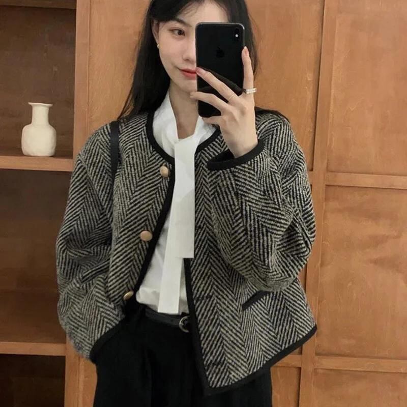 Gidyq-女性用ルーズフィットジャケット,韓国のカジュアルなストリートウェア,トリミングされたアウターウェア,すべてのマッチ,デザインボタン,秋_252