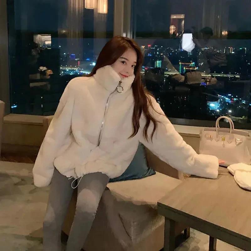 Gidyq-女性のフェイクウサギダウンコート、韓国のファッション、ストリートウェア、ぬいぐるみジャケット、カジュアル、厚手、暖かい、ルーズコート、女性、冬、新しい_256