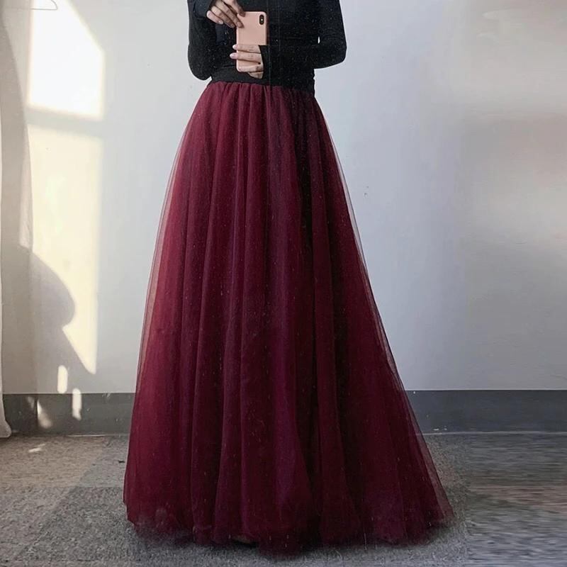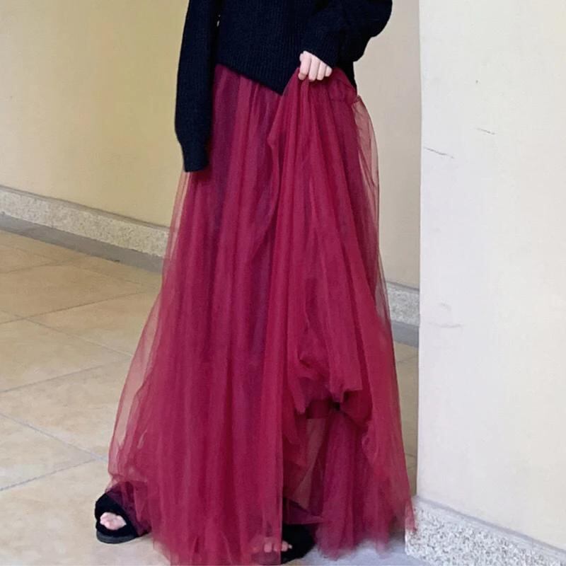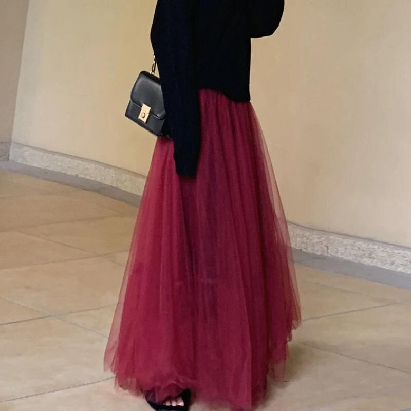 Godyq-女性のためのチュールの空中ブランコスカート,ロング,カジュアル,エレガント,韓国ファッション,ハイウエスト,プリーツ,ライン,新品_259