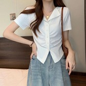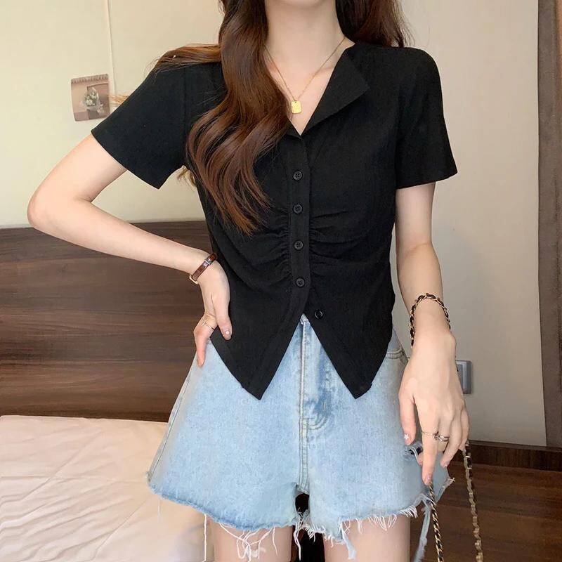 女性用シルクTシャツ,半袖トップス,韓国ファッション,ソフト,スリム,マッチ,シック,原宿,セクシーボタン,VネックTシャツ,夏_262