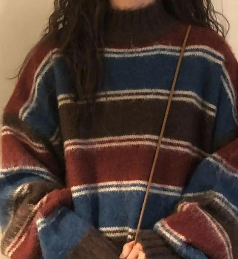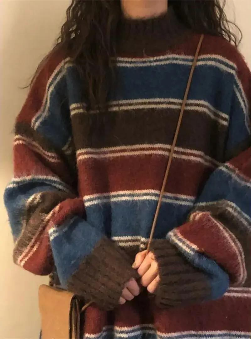 Gidyq-女性のための原宿ストライプのニットセーター、ルーズフィット、ヴィンテージパッチワークプルオーバー、カジュアルストリートウェア、韓国のファッション、新しい_263