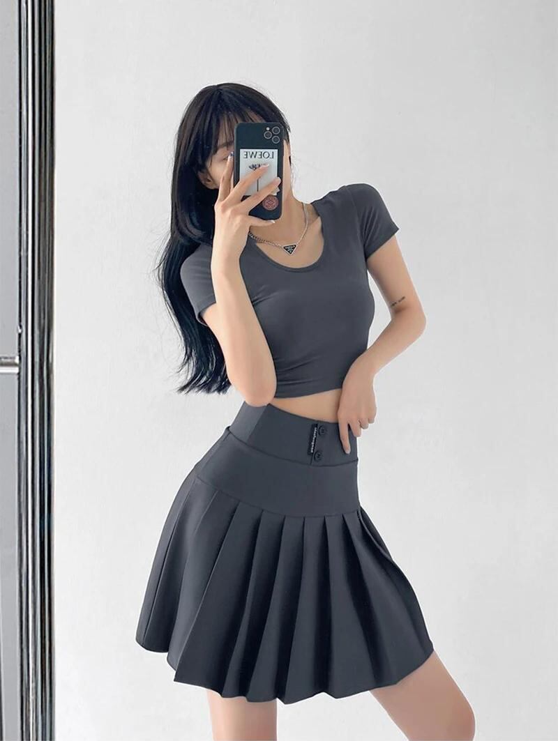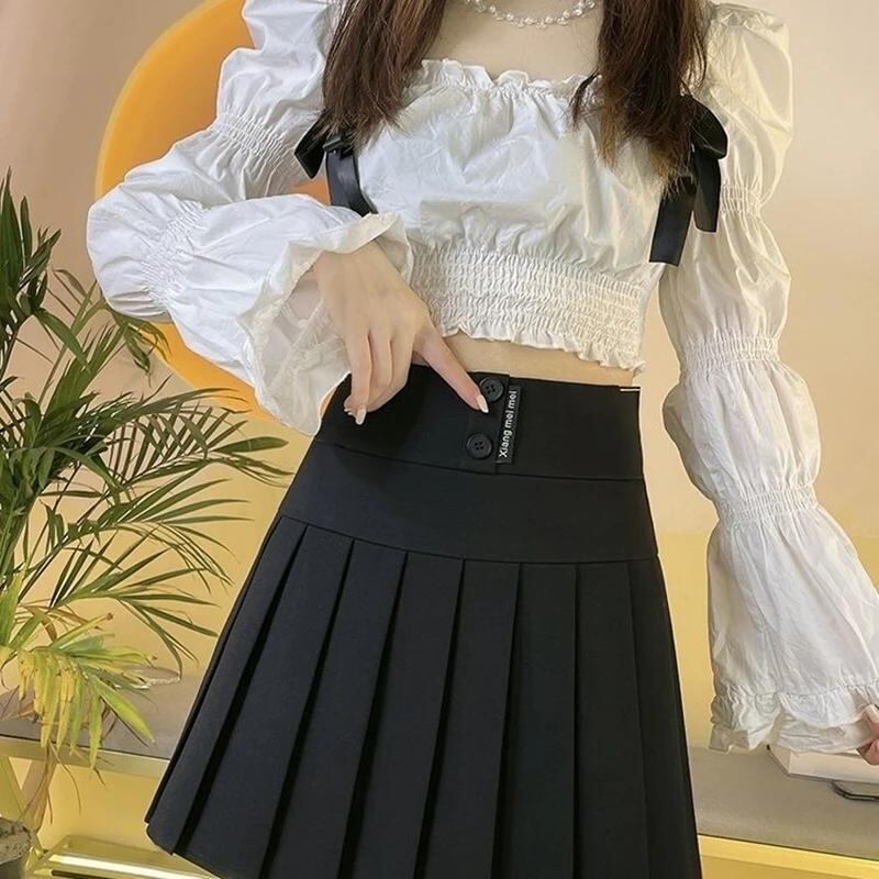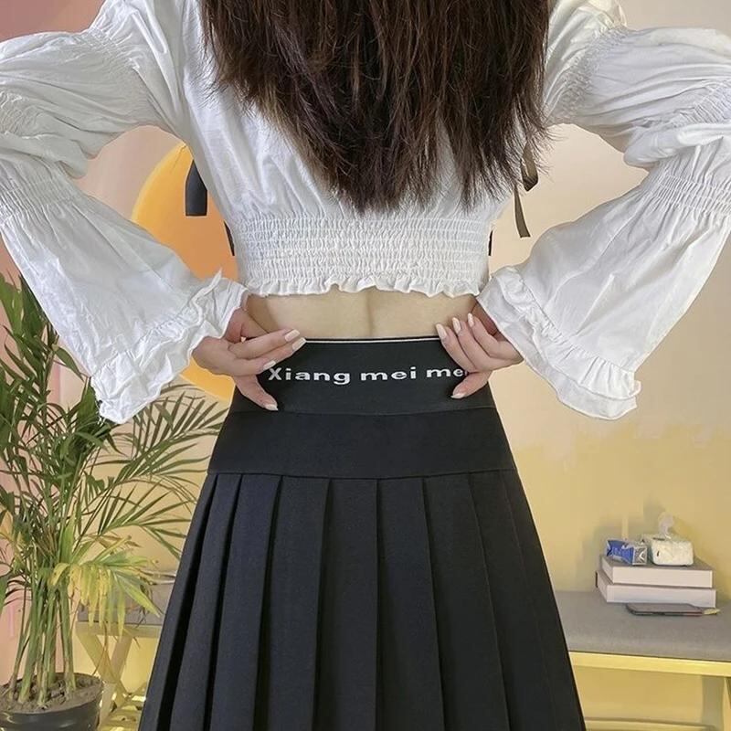 女性のためのパッチワークハイウエストプリーツスカート、プレッピースタイル、安全パンツ、jkミニスカート、シックな空中ブランコ、ソリッド、韓国、ソフト、ファッション_268