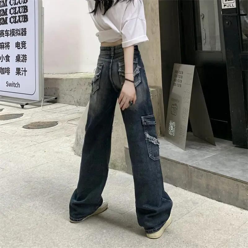 Gidyq-女性用ハイウエストカーゴジーンズ、韓国風タッセル、ルーズワイドレッグパンツ、レディースストリートウェア、デニムパンツ、スプリングファッションにマッチ_277