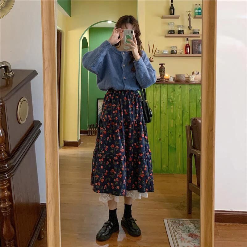 Gidyq-女性用フローラルスカート、韓国、オールマッチ、レース、ミディスカート、y2k、エレガント、女性、ハイウエスト、ライン、カジュアルファッション、春、新作_283