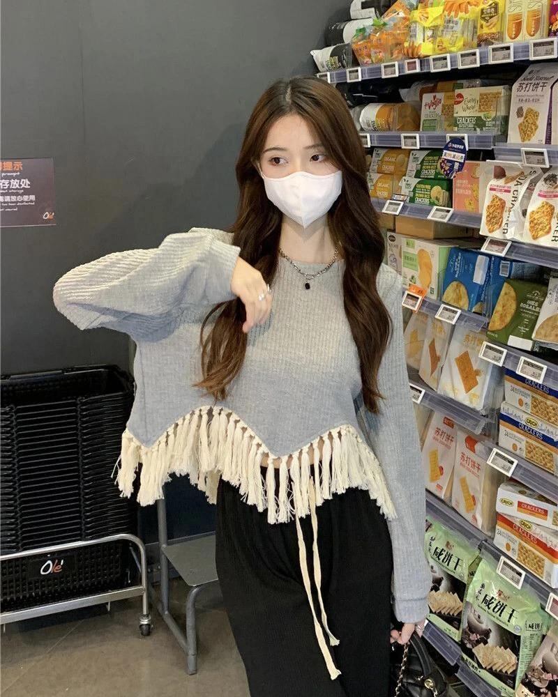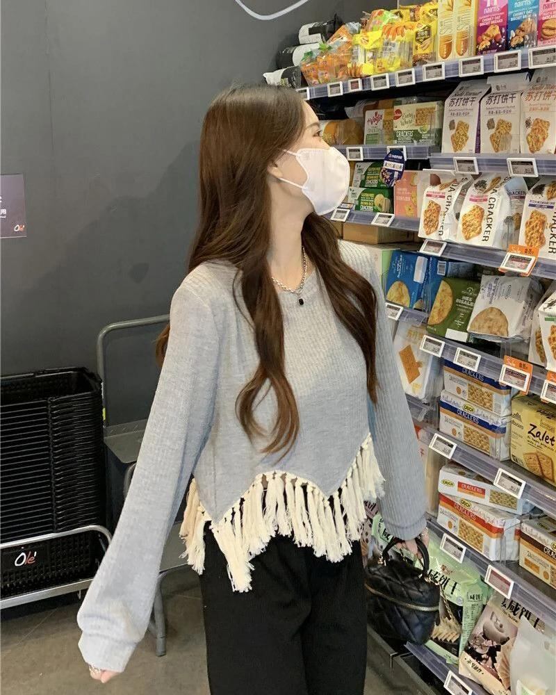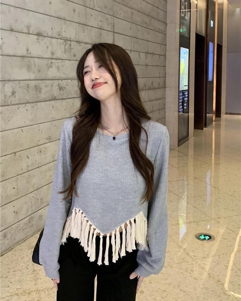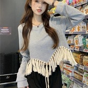GIDYQ-女性のニットシャツ,韓国のカジュアルなストリートウェア,セクシーなクロップトップ,すべてのデザインのタッセル,だぶだぶのTシャツ_286