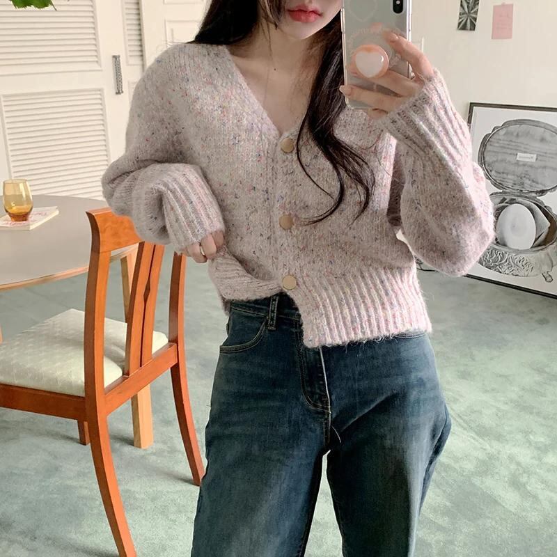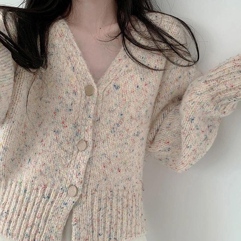 Gidyq-女性用ニットカーディガン,マルチカラーセーター,ルーズコート,カジュアルなストリートウェア,クロップドジャケット,韓国のファッション,秋,新品_288