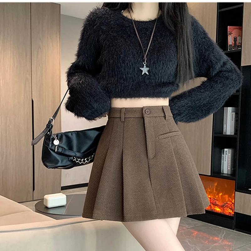 Gidyq-女性用ウールプリーツスカート,ハイウエストスカート,韓国風ミニスカート,カジュアル,原宿ファッション,ストリートウェア,厚手,ライン,新品_290