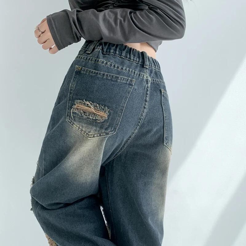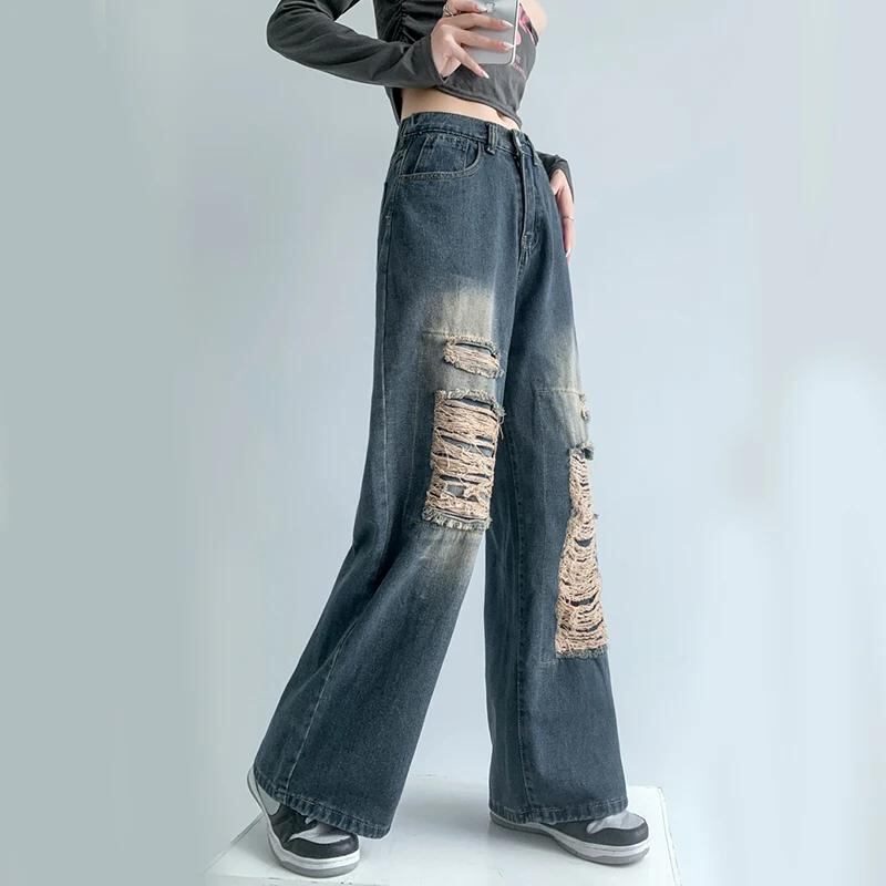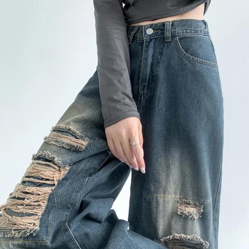 Gidyq-女性のためのハイウエストジーンズ、韓国のファッション、トリミングされたストリートウェア、ルーズワイドレッグパンツ、カジュアルレディースデニム、ストレートパンツ、秋_295