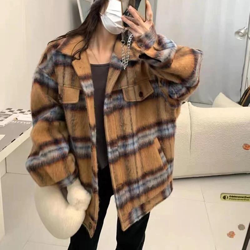 Gidyq-女性のフェイクウールストライプのジャケット、韓国のファッション、すべてにマッチ、ルーズソフトラディトウェア、女性のストリートウェア、秋のコート、新しい_301