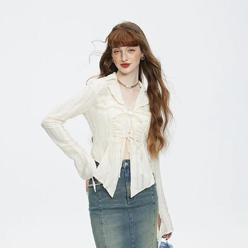 Gidyq-レディースファッションシャツ,アメリカスタイル,カジュアル,セクシー,レースアップ,パンツ,長袖トップス,ストライプ,すべてにマッチ_303