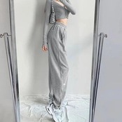 女性用ワイドレッグハイウエストスポーツパンツ,ルーズカジュアルパンツ,レディース原宿ストリートウェア,ストレートパンツ,韓国ファッション,夏_308
