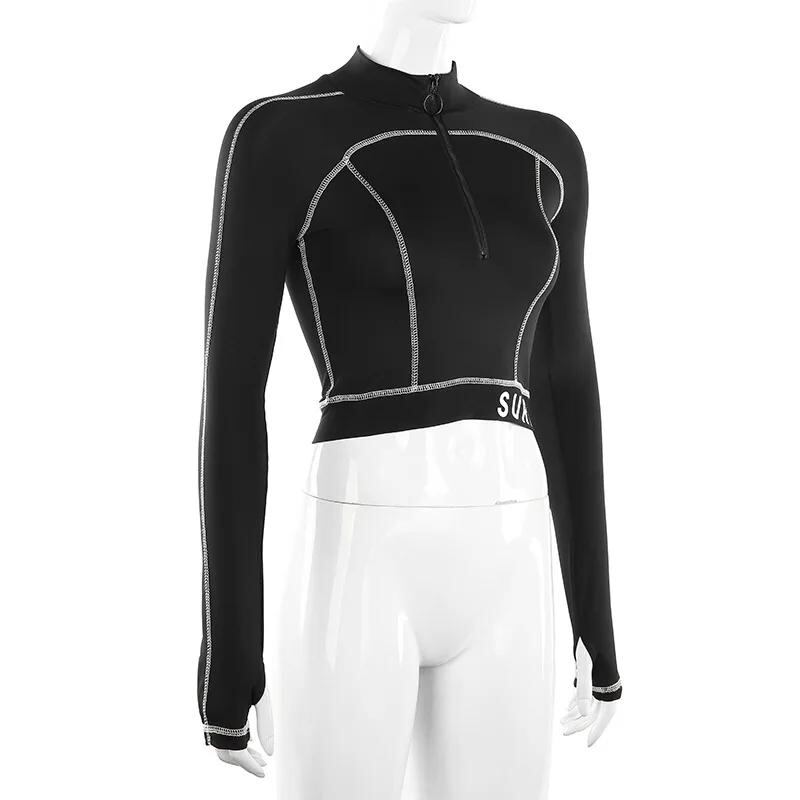 女性のためのセクシーな半ノースリーブTシャツ,カジュアルな韓国スタイル,ストリートウェア,ジッパー付き_317