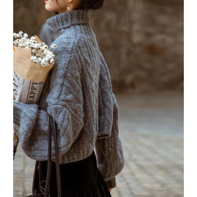 Gidyq-レディースヴィンテージニットセーター、韓国カジュアルストリートウェア、クロップドルーズコート、厚手の暖かいプルオーバー、秋、女性、新しい_323