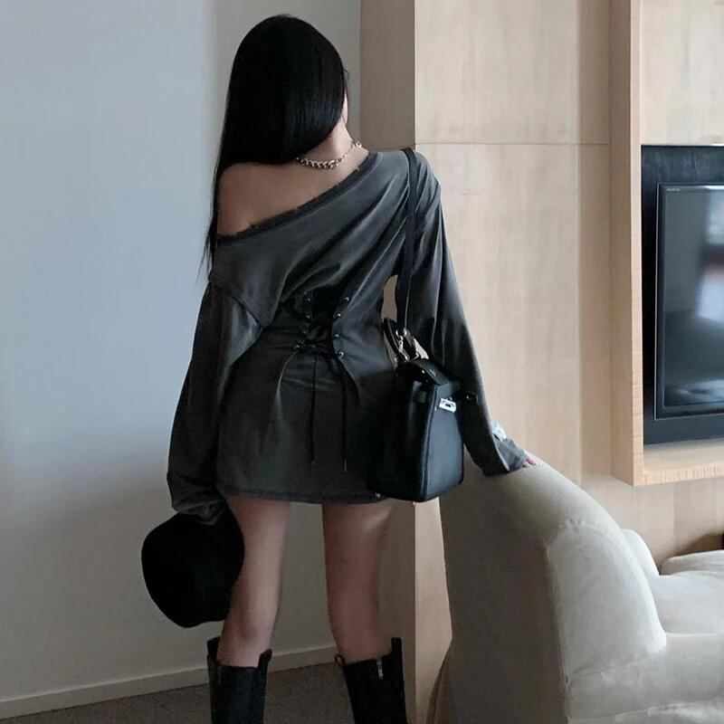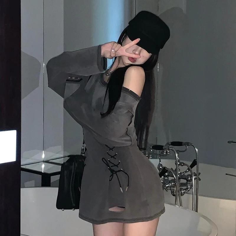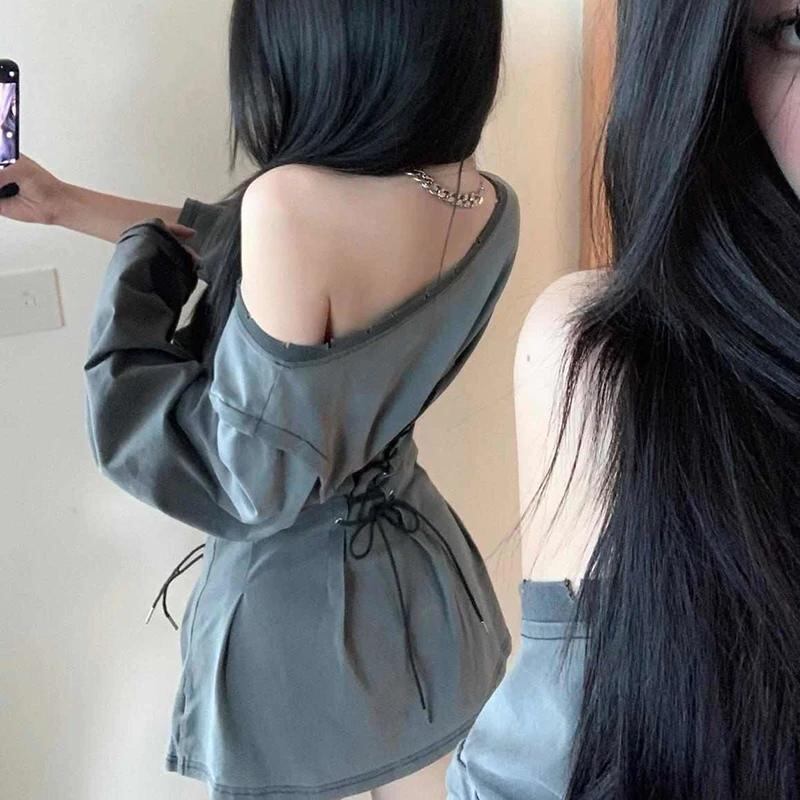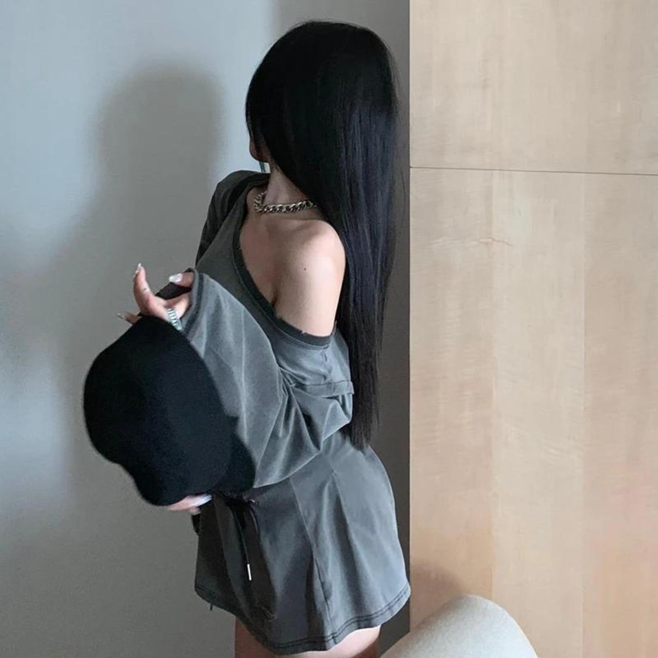 Gidyq-女性用長袖Tシャツ,ゆったりとしたカジュアルなアメリカンスタイル,裸の肩,ミディトップ,原宿,すべてのマッチ,ストリートウェア_329
