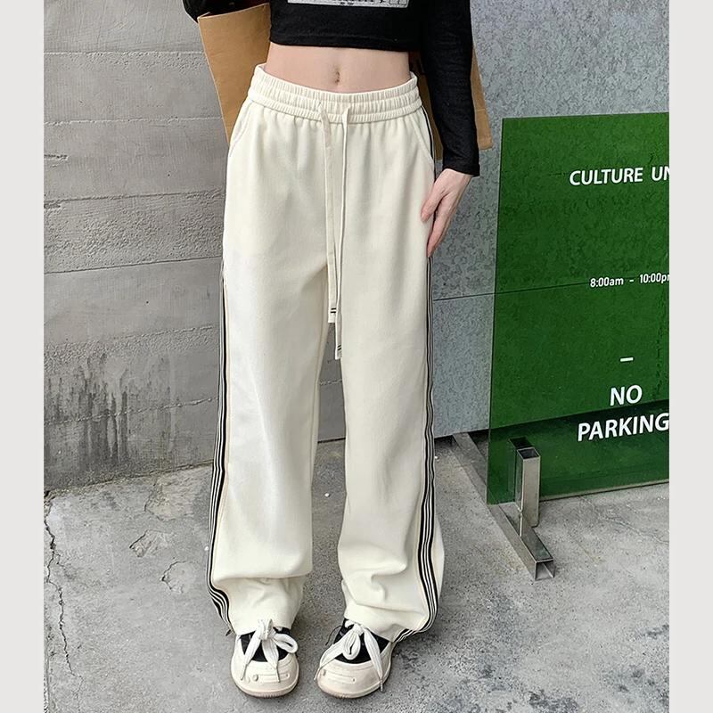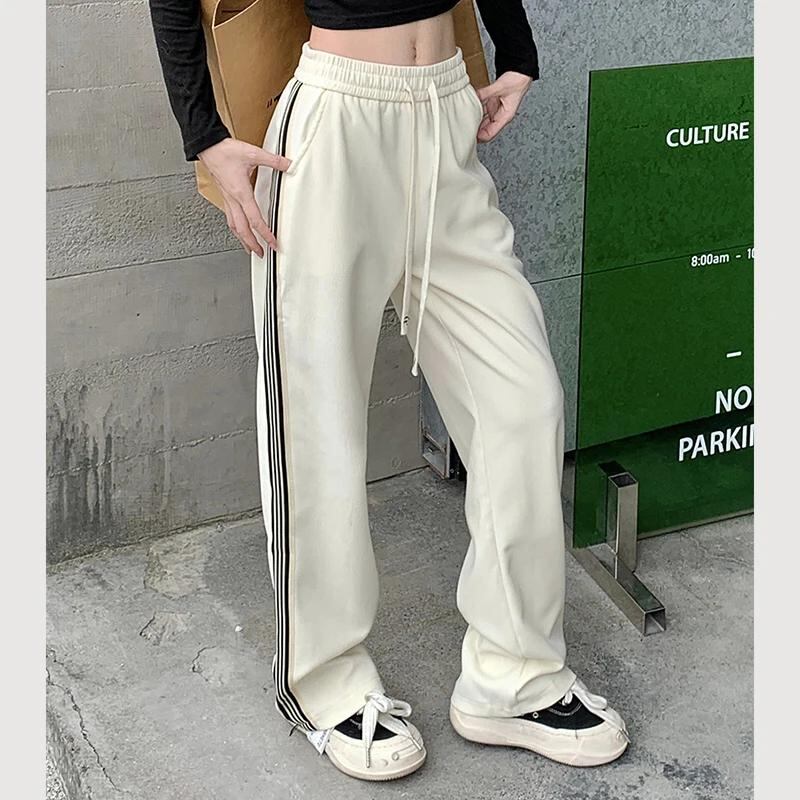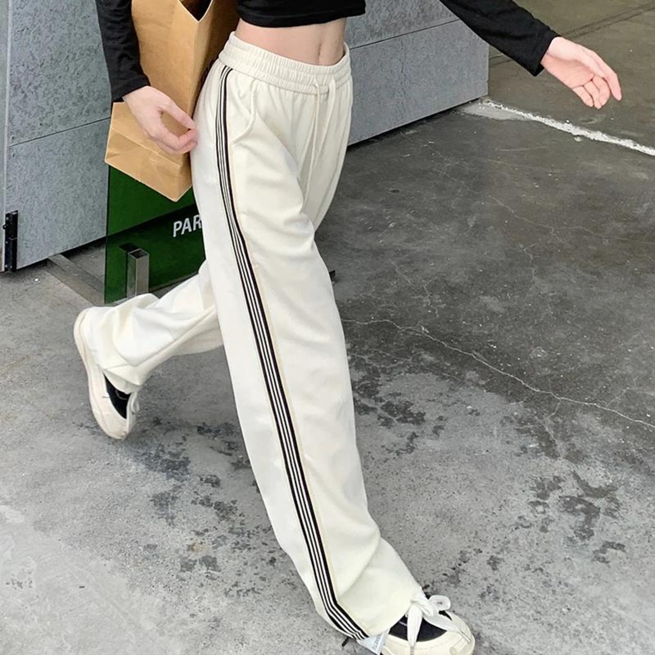 Gidyq-女性用ワイドレッグパンツ,韓国,ロング,ストライプ,ルーズ,カジュアル,ハイウエスト,ストリートウェア,ストレート,秋,新品_333
