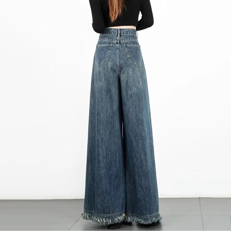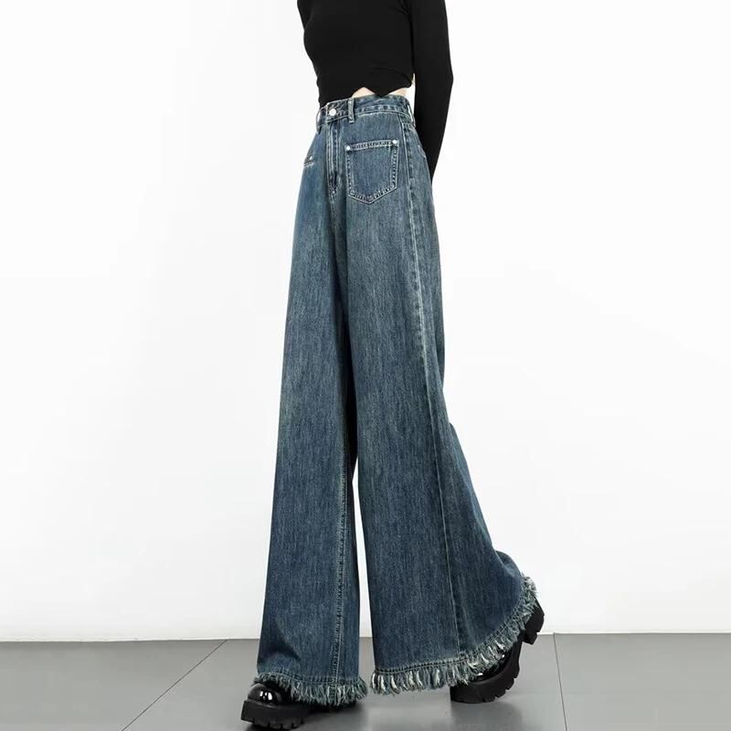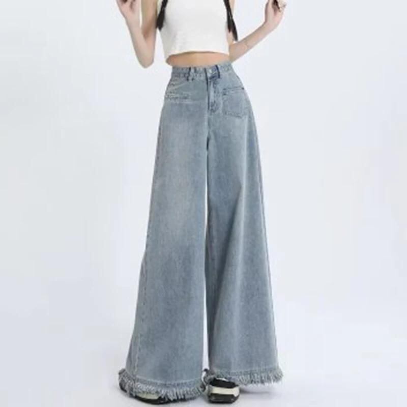 Gidyq-レディースハイウエストワイドレッグデニムパンツ、カジュアルストリートウェア、レディースルーズパンツすべて、タッセルジーンズ、韓国ファッション、春_336