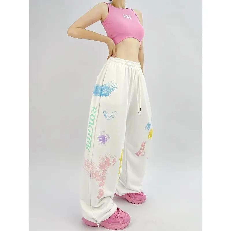 Gidyq-女性用ワイドレッグパンツ,カジュアル,アメリカンスタイル,レタリング,ルーズフィット,ハイウエスト,ヒップホップスタイル_339