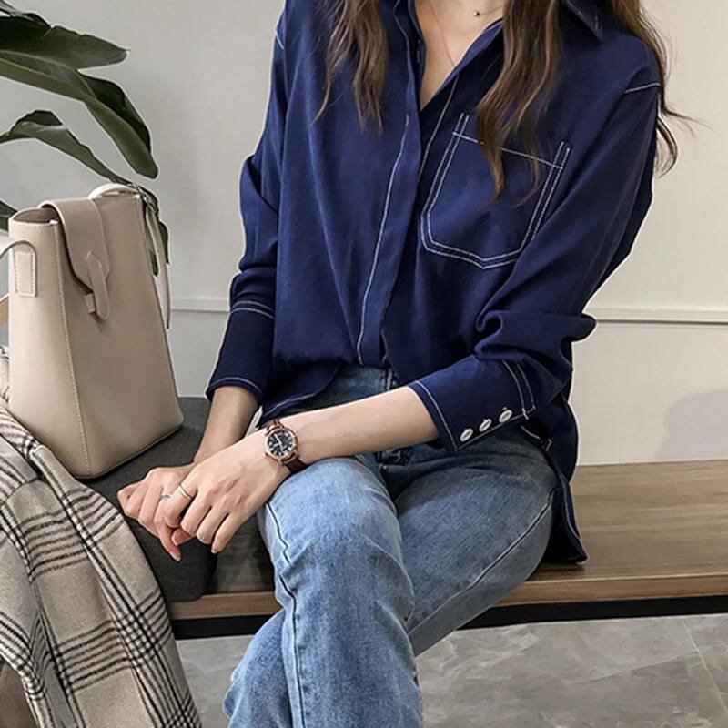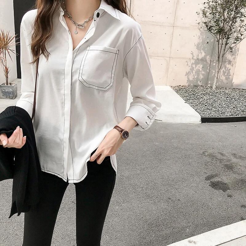 女性のためのファッショナブルな韓国の秋のシャツ,ゆったりとしたカジュアルなストリートウェア,原宿,すべてにマッチするデザイン,ボタン付き,新しいコレクション_342