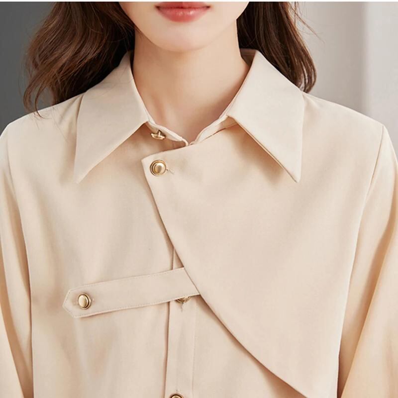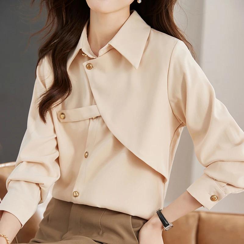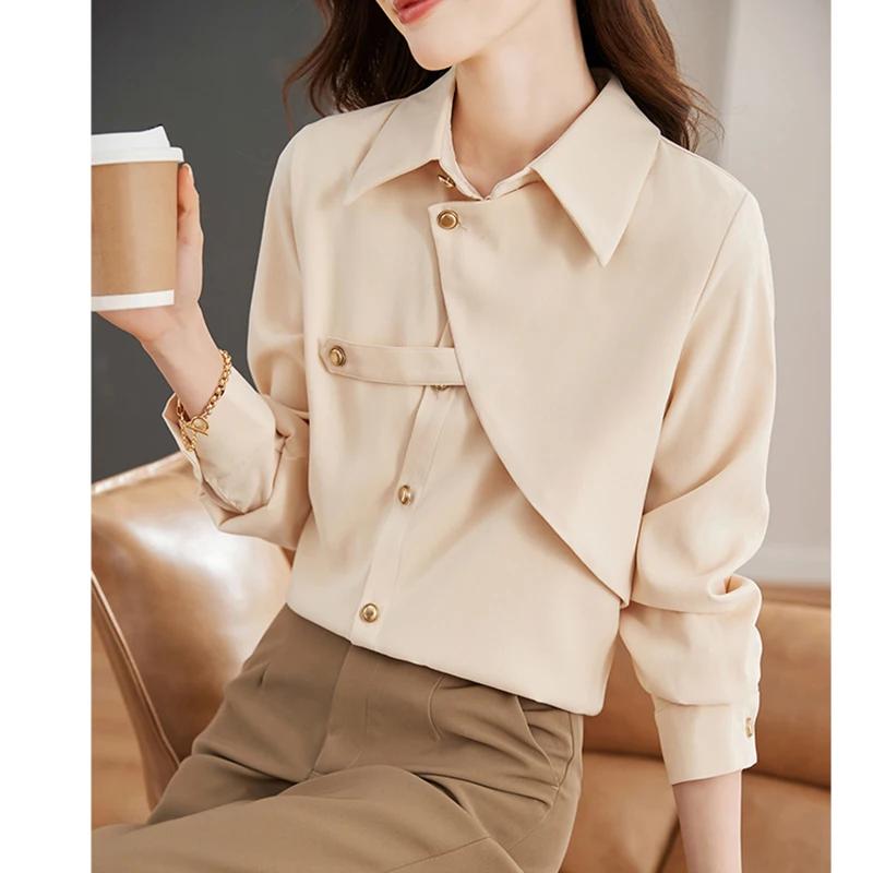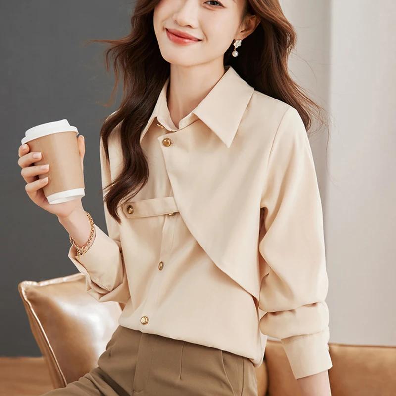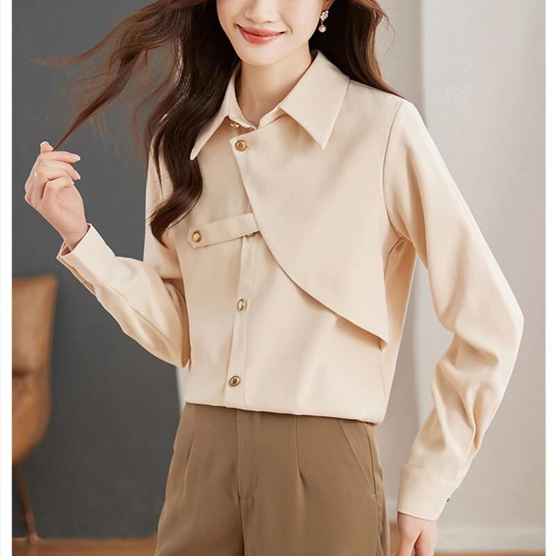 Gidyq-レディース単色ルーズブラウス、エレガントなシャツ、女性のデザイン、春、カジュアル、韓国、金属ボタン、オフィスレディース、ファッション、新しい_345